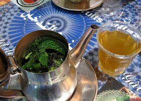 I don't know about the diabetes rate in Morocco, but I do know that if you throw a dirham in any direction in the country, it is sure to hit at least one dental surgery and probably a dentist as well (there are a lot of lawyer's offices as well for some reason). Morocans take lots of sugar in their tea and coffee. Coffee comes unsweetened and you add sugar to taste, but as you can see from the recipe above, the mint tea is brewed with sugar and is served with more lumps of it. None of that "teh satu, kurang manis" over there. The thing is, the sweetness seems to enhance the taste of the mint tea or coffee (very good, thick French or Italian roasts).