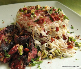Well, when I saw the picture of the Arabian rice in the book, I thought it looked like the barberry rice which I cooked for Don't Call Me Chef in October 2009 ("1,001 bites"; I prepared sumac chicken to go with the rice). My recipe is quite different, and perhaps you would like to compare.
