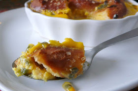 But I thought that might actually be a good idea even if my doughnuts were the cake type. The yeast doughnuts, like in normal bread pudding, would be allowed to soak in the egg and milk mixture to soak up some of the liquid before baking. I didn't do that with these doughnuts though, and baked them immediately after the custard had been pour into the baking dish in which I had arranged the broken doughnuts.