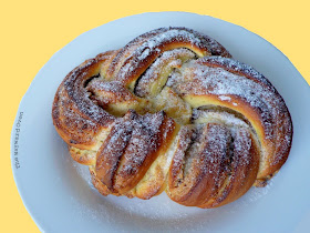 Both times I made the braid, I forgot to take a photo after the loaf was sliced, so there is no picture of the crumb. But it's not difficult to imagine the intertwined layers of dough and filling.