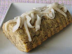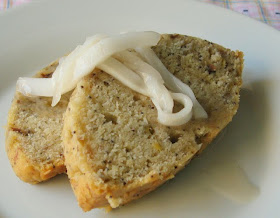 The cake was baked in a 30 x 10.5cm fluted loaf pan (I know there's a name for this sort of pan and the cake made in it, but for the life of me I can't remember it. Anyone?) It is non-stick but I still greased it really well with oil using a pastry brush to get into all those crevices. The quantity of batter, however, is sufficient for a 900g loaf pan, 17cm fluted ring/Bundt pan or a dozen ½-cup capacity muffin moulds.