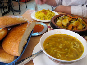 Looks like I couldn't keep away. The food here is just too good and I have to say something about it! Landed in Casablanca on Saturday morning, settled in at the hotel and then off to lunch at a hole-in-the-wall place. This is what Mr NoTime (who will make time for a good meal) and I had: