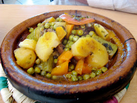 The tagine was highly spiced and the first taste of the gravy almost made me fall off my chair! I knew it would be delicious from the aroma, but never suspected how fantastic it would be. The vegetables in it were potatoes, carrots and peas. This next picture is not very clear, but it gives you an idea of the tagine.