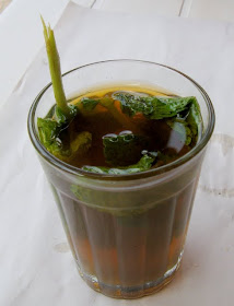 I don't know about the diabetes rate in Morocco, but I do know that if you throw a dirham in any direction in the country, it is sure to hit at least one dental surgery and probably a dentist as well (there are a lot of lawyer's offices as well for some reason). Morocans take lots of sugar in their tea and coffee. Coffee comes unsweetened and you add sugar to taste, but as you can see from the recipe above, the mint tea is brewed with sugar and is served with more lumps of it. None of that "teh satu, kurang manis" over there. The thing is, the sweetness seems to enhance the taste of the mint tea or coffee (very good, thick French or Italian roasts).