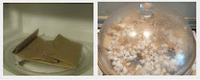 Paper bag in the microwave (left) and in a pot with a domed lid on the stove