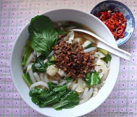 I've seen it prepared by hawkers, but have never been persuaded to eat it, preferring instead to have the more conventional kueh teow or yellow mee. It isn't a prejudice; I just never thought about it.