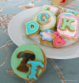 But I only needed to look at some of the finished cookies posted on the Daring Baker's forum to get a push (you can view them here). This really is my first attempt at decorating sugar cookies with royal icing so I told myself to keep it simple. I had got a set of alphabet cutters on my last visit to the baking supply shop, and I like words, so that seemed a good way to go.