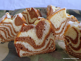 I first saw the recipe and instructions for a zebra cake – a marble cake but with zebra stripes on the inside! – at AZ Cookbook back in 2008. (Real Epicurean has a slightly different recipe but with the same design.) I tried the recipe, and the stripes came out quite nicely, but the centre of the cake was uncooked. I usually have myself to blame when my cooking attempts fail, but this time it was the fault of my oven which didn't heat properly from the bottom.