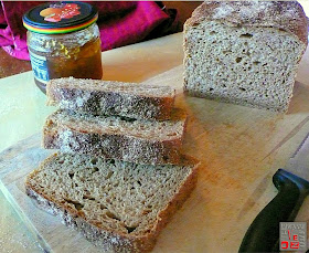 I've been reading up on whole-grain breads and how to make them taste better for me. I've come close with this loaf. It would have been closer if I hadn't burnt the top, but apart from that, this bread appeals to me.