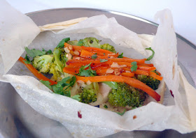 Cooking en papillote or in parchment is a good way to retain flavour in a dish as it seals in the juices. I used to think that using paper would be difficult and messy, and that aluminium foil or cling film would be a better alternative. But unlike paper, foil and plastic are not permeable, and while that keeps the food from leaking, there is also the risk of overcooking.