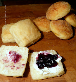 After the fourth folding, dust under and on top of the dough one final time, then roll or press out the dough to 1.5cm thick. Cut out into circles, squares or triangles. Press the scraps together and roll out to 2cm thick. Cut out as many pieces as possible. Place on an ungreased baking pan about 2cm apart. Let the scones rest for 15-30 minutes (if possible place the tray in the refrigerator).